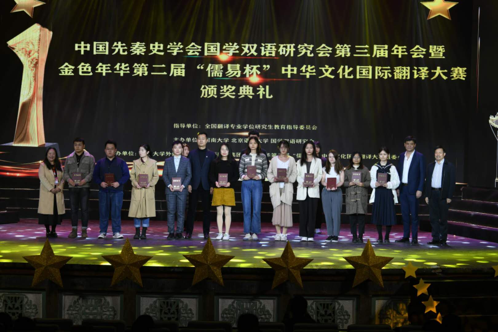 10月24日至25日,由全国翻译专业学位研究生教育指导委员会指导,河南大学、北京语言大学、中国先秦史学会国学双语研究会联合主办,河南大学外语学院、上海世语翻译集团、金色年华第二届“儒易杯”中华文化国际翻译大赛组委会联合承办的国学双语研究会第三届年会暨金色年华第二届“儒易杯”中华文化国际翻译大赛颁奖典礼在河南大学举办。校党委副书记、副校长刘志军,副校长阚云超分别出席开幕式和闭幕式。