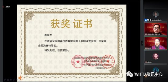 世界翻译教育联盟翻译技术教育研究会副会长徐彬教授用“理念先进、做法成熟、行动力强、教学有效、知识共享、惠及学科”总结了本次大赛,并希望各位老师能够继续探索,再创辉煌。
