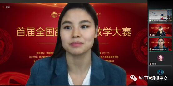 决赛环节,由WITTA翻译技术教育研究会副秘书长、天津外国语大学外国语学院朱华老师主持上午场比赛,由广州斑斓科技有限责任公司总经理陈杲主持下午场比赛。大赛共邀请了杨俊峰、崔启亮、俞敬松、徐彬、张霄军、张静、曹达钦等七位专家担任评委。本次大赛共有22支参赛队伍,按非翻译专业组、BTI组、MTI组顺序依次比赛。各个参赛老师的说课都各具特色,从课程目标、教学方法、教学内容、课程评价、教学资源等几方面系统性展开,将翻译技术与口译教学、职业规划等多领域结合,在短短七分钟内向我们展示了一个切实可行的翻译技术教学框架。在答辩环节,他们对待评委的问题妙语连珠、言简意赅,认真且虚心听取相应的意见和建议。